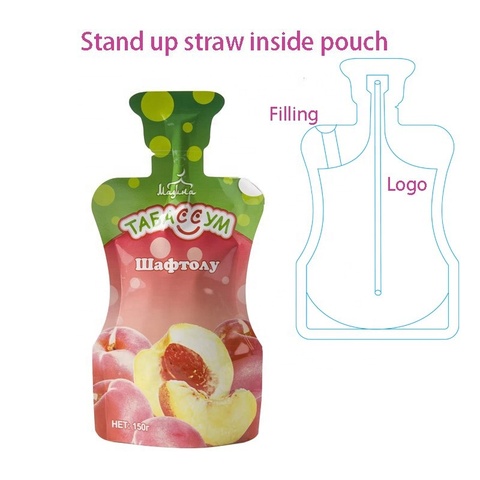 밀짚 과일 주스 충전기가있는 맞춤형 포장 액체 음료 비닐 봉지 서 파우치 재료